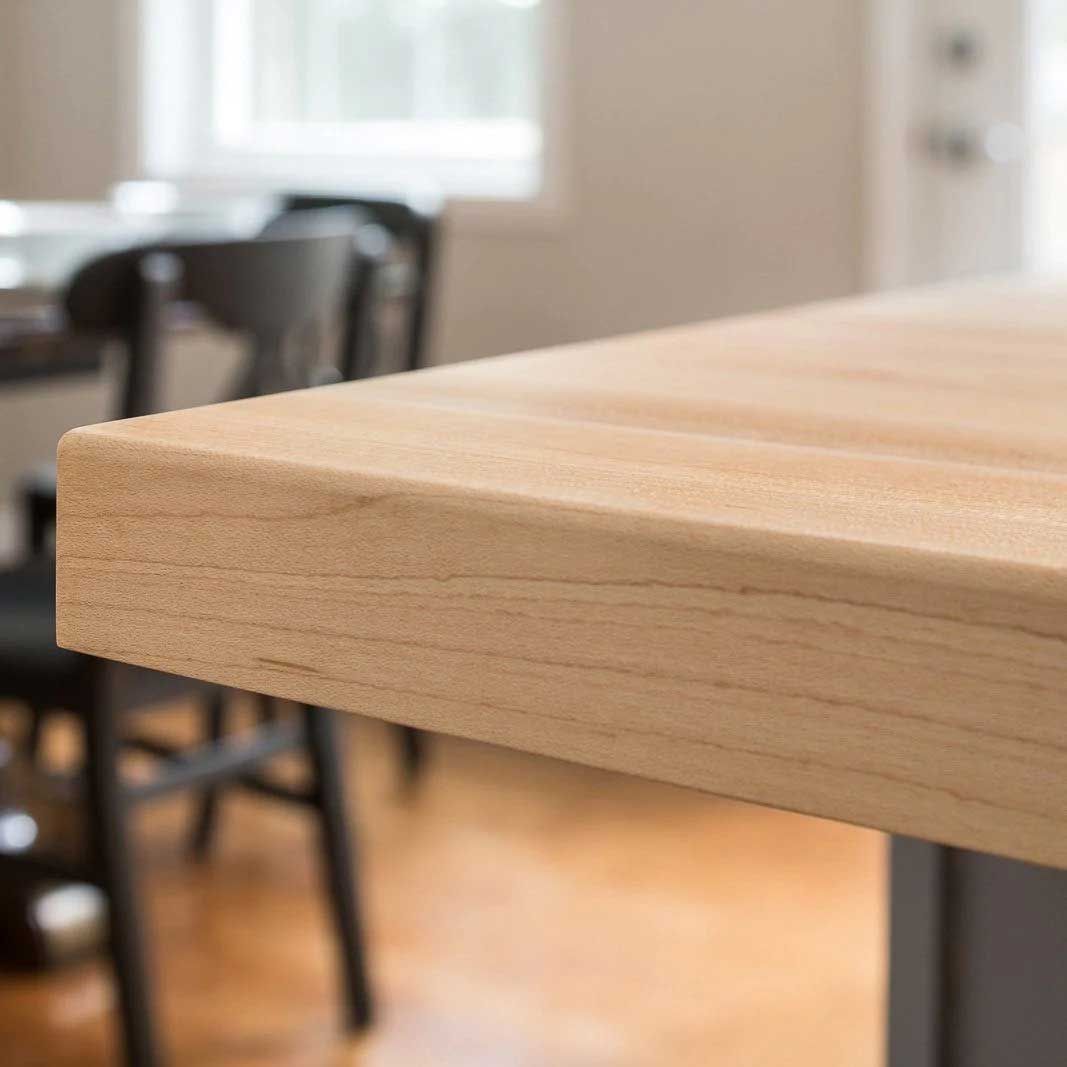 This countertop comes unfinished, allowing us to customize it to your desired aesthetic. With its standard edge design, our birch butcher block countertop adds a touch of timeless charm to your kitchen.